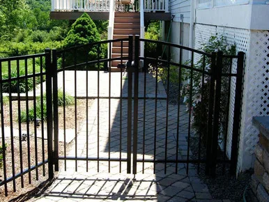 Gates are offered in 3’, 4’, 5’ or 6’ widths and can be used as a single gate or as a double-gate configuration when a larger opening is required. Most fence styles also offer the option of Single-Arch or Double-Arch gates. When wider openings are necessary for moving golf carts, lawn mowers or other large equipment, choose a Double-Arch gate with widths up to 10 feet. Designed and fabricated for years of maintenance-free performance, each gate is supported by a structural heavy wall post to prevent sagging. These structural posts are available in 2”, 2.5”, 3” and 4” square and can be used to accent your gated entrance.