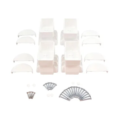 The 2" x 3.5" Angle Wizard Vertical Stair Bracket Kit is designed and manufactured by LMT. This kit is a four pack and includes two stair brackets, two hidden screw brackets, and all the screws, plugs, and covers necessary for installation.